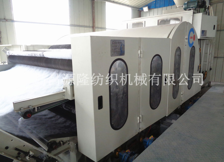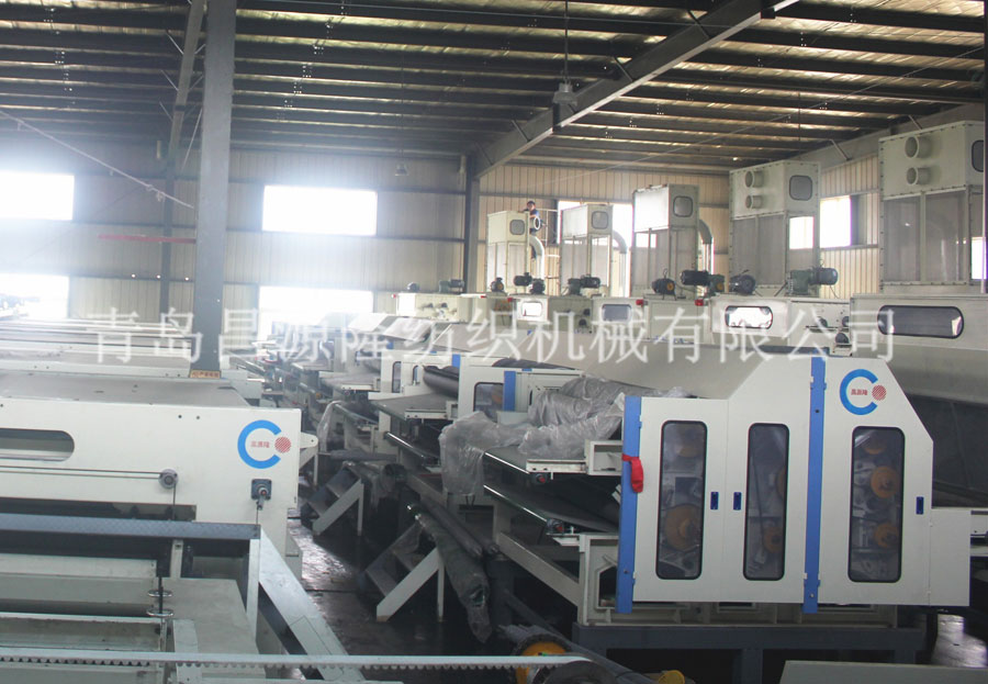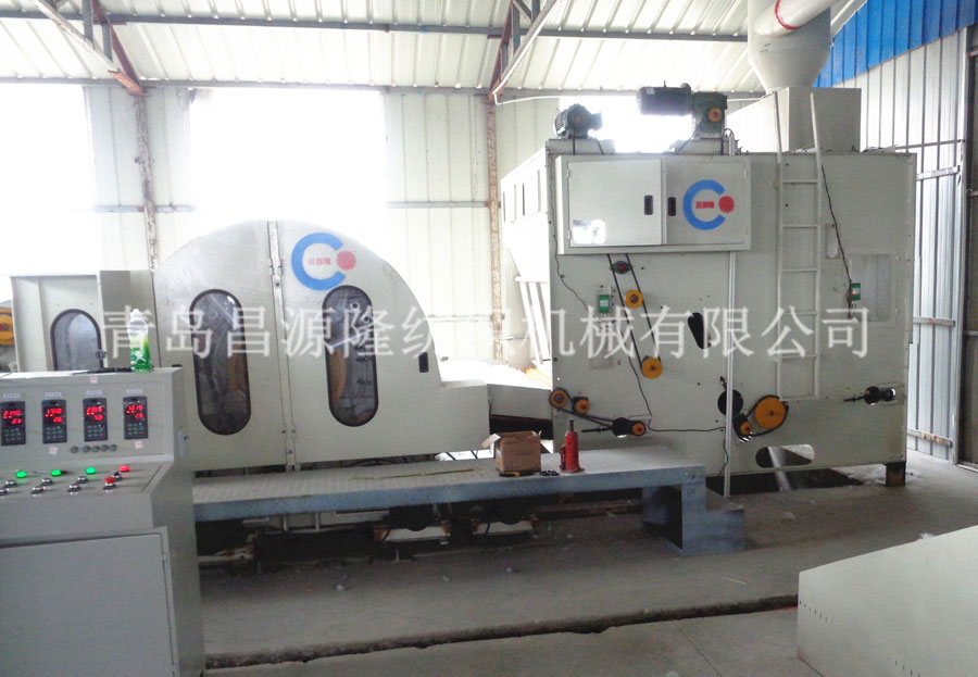 4. CYLSL-2000梳理機:該機(jī)為單錫林、雙道(dào)夫、四雜(zá)亂、羅拉剝取。該機所有輥筒都經調質和定性處理(lǐ)後,再精密加工。牆板由鑄鐵加(jiā)工而(ér)成,針(zhēn)布(bù)采用國產優質針布,並配(pèi)有吸風裝置,可減少清機次數,還帶有走台(tái)。具(jù)有分梳能力強,產量高等優點。