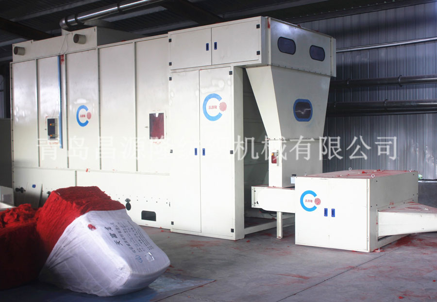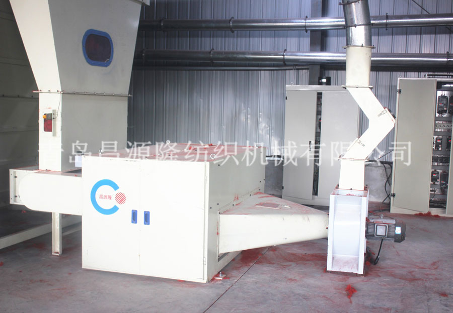 2. CYLKS-開鬆機:開鬆各種捆包纖維,按比例由電子秤進行稱量,均勻平鋪在混棉簾上。各種不同纖維被放入水平輸送簾,經壓棉(mián)輥和對(duì)輥羅拉喂入,經高速打手開鬆後由輸棉風機送到下道工序。