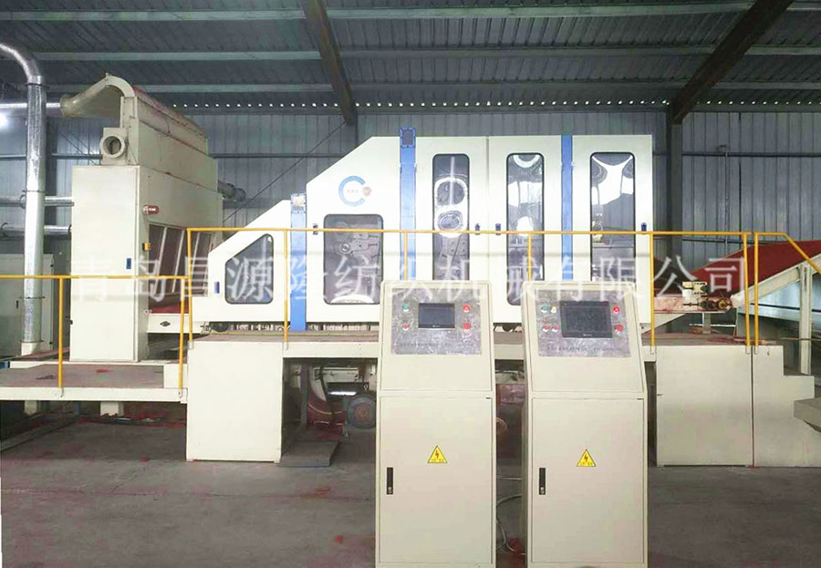 4. CYLSL-梳理機:該機為雙錫林、雙道(dào)夫、四雜亂、羅拉剝(bāo)取。該機所有輥筒都(dōu)經調質和定性處理後,再精密加工。牆板由鑄鐵加工而成,針(zhēn)布采用國產優質針布(bù),並配有吸風裝置,可減少清機次數,還帶有走台。具有分(fèn)梳能力強,產量高等優點。