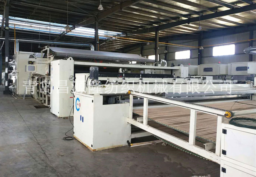 5. CYLPW-2200鋪網機:機架采用6mm鋼板折彎而成,鋪網(wǎng)簾之間加補償電機,減少纖網牽(qiān)伸。往複換向用變頻控製,衝擊力小(xiǎo),能自動緩衝平衡換向,並配有多段(duàn)速控製。底簾可調節升降,使棉網能按照所需要的單(dān)位克重均勻鋪(pù)疊到底簾上,供下一道工序(xù)使用。斜簾﹑平簾和大車平簾用高檔(dàng)優質(zhì)皮簾,底簾和環簾為木簾子。